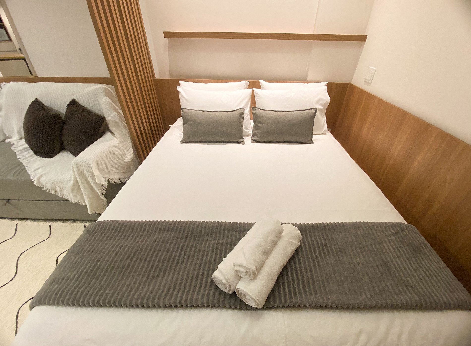 Já o apartamento foi preparado para oferecer aconchego e conforto para uma experiência única.